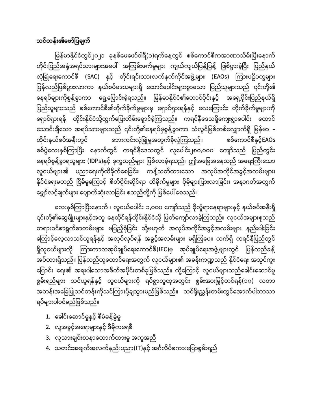 (မှတ်ချက် - CDM ဝန်ထမ်းနှင့်ကျောင်းသားများအား ဦးစားပေးစဥ်းစားမည်)